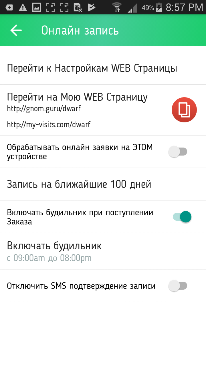 Чтобы убедиться, что эта ссылка работает для вашего аккаунта, зайдите в Настройки / Онлайн Запись / Перейти на Мою WEB страницу.